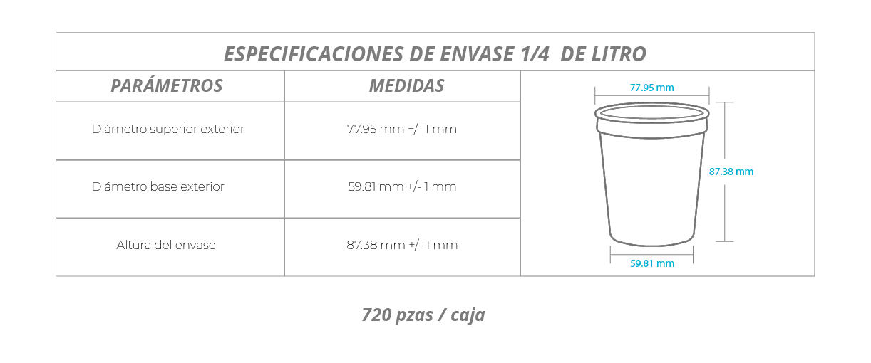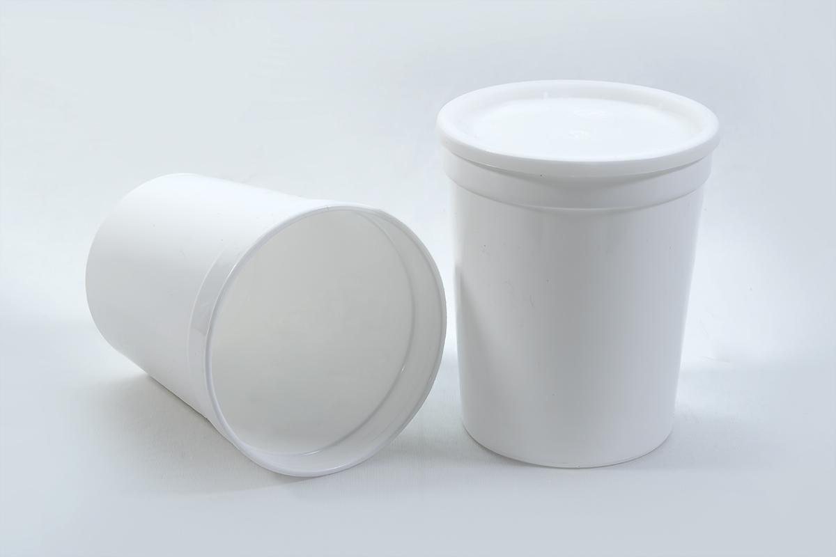 Envase muy resistente recomendado para pequeñas cantidades de pinturas, también utilizado en ramo alimenticio para envasar cremas, yougurts, salsas etc.
