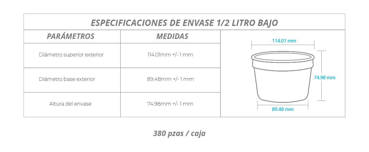Es el envase más conocido en el mercado, y sirve para múltiples aplicaciones, conocido en el ramo alimenticio para envasar crema, miel, yougurt, cajeta etc y el preferido en ramo pinturero por su tamaño, peso y precio.