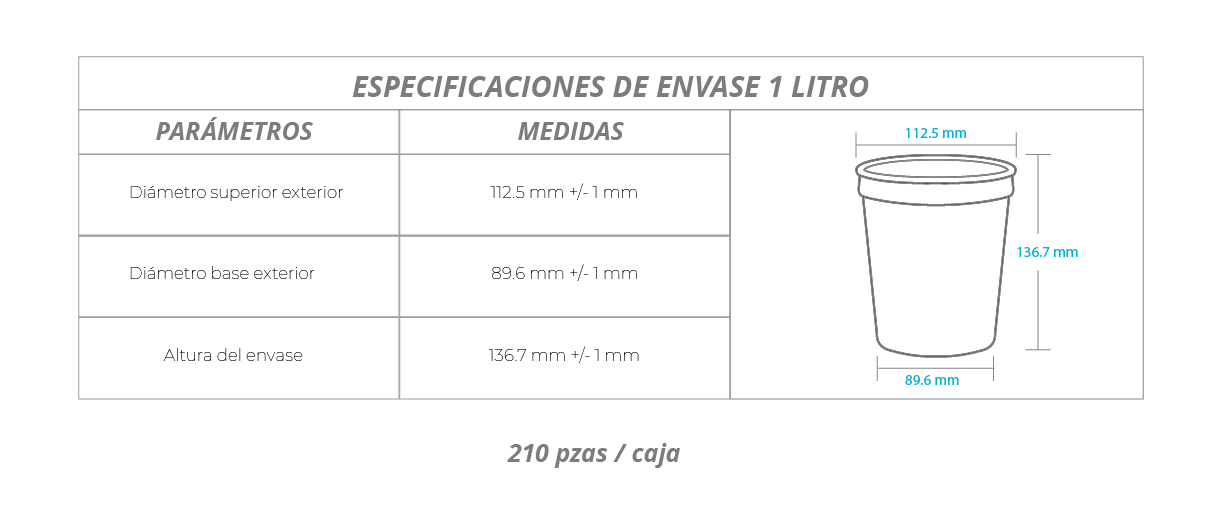 A diferencia del medio litro bajo este envase es más conocido en el ramo industrial, poseé una boca más delgada y es de mayor altura, recomendado para pinturas, aceites, grasas, etc.
