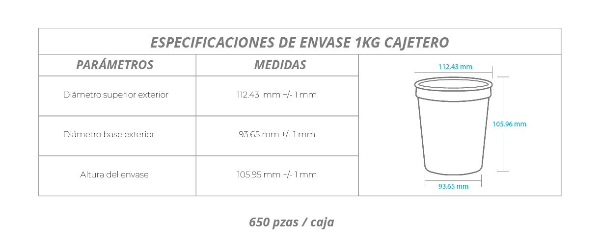 Diseñado, calculado y elaborado específicamente para envasar 1kg exacto de cajeta. Pesado y resistente..