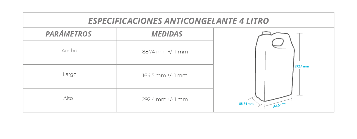 Envase de polietileno de alta densidad ideal para uso industrial, como su nombre lo indica es comúnmente utilizado para envasar anticongelante.
